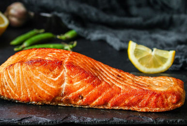 Przepis na stek z łososia krok po kroku – Łososia dopraw solą i pieprzem cytrynowym. – Na patelni rozgrzej masło klarowane. Połóż łososia. Smaż na
